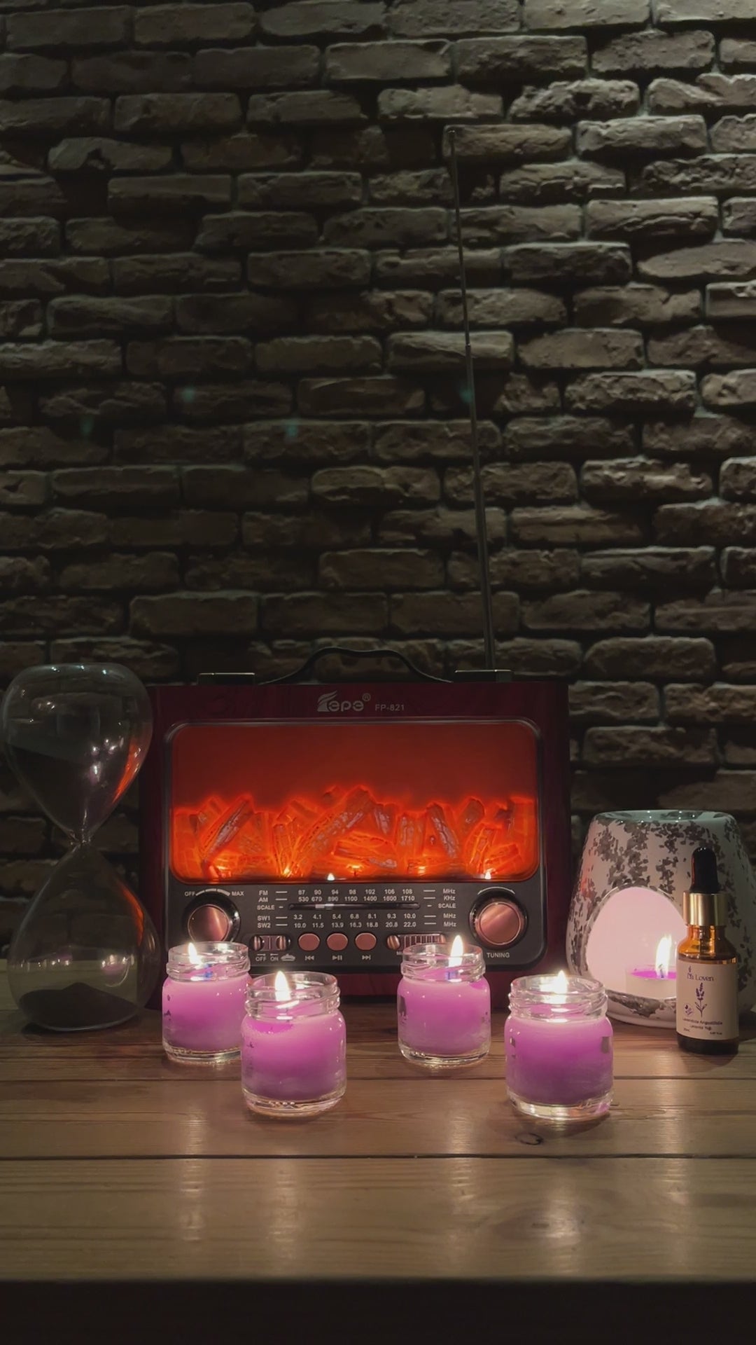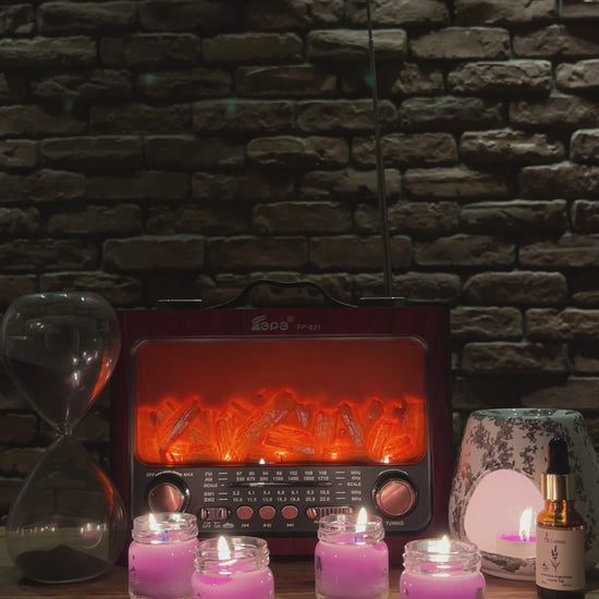 Antika radyo tipindeki Bluetooth şömine ile tasarlanan bu özel set, hem dekoratif hem aromaterapik bir atmosfer sunar. Siyah kumlu kum saati, siyah desenli buhurdanlık ve 4’lü mum ile birleşerek yaşam alanınızda nostaljik, modern ve huzurlu bir ortam oluşturur. Lavanta yağının rahatlatıcı kokusu ise seti tamamlayan en özel dokunuştur.