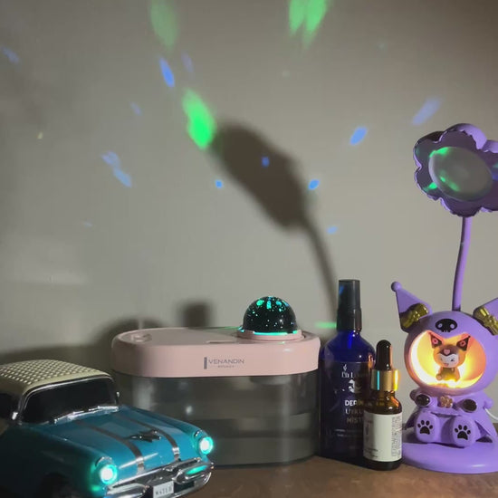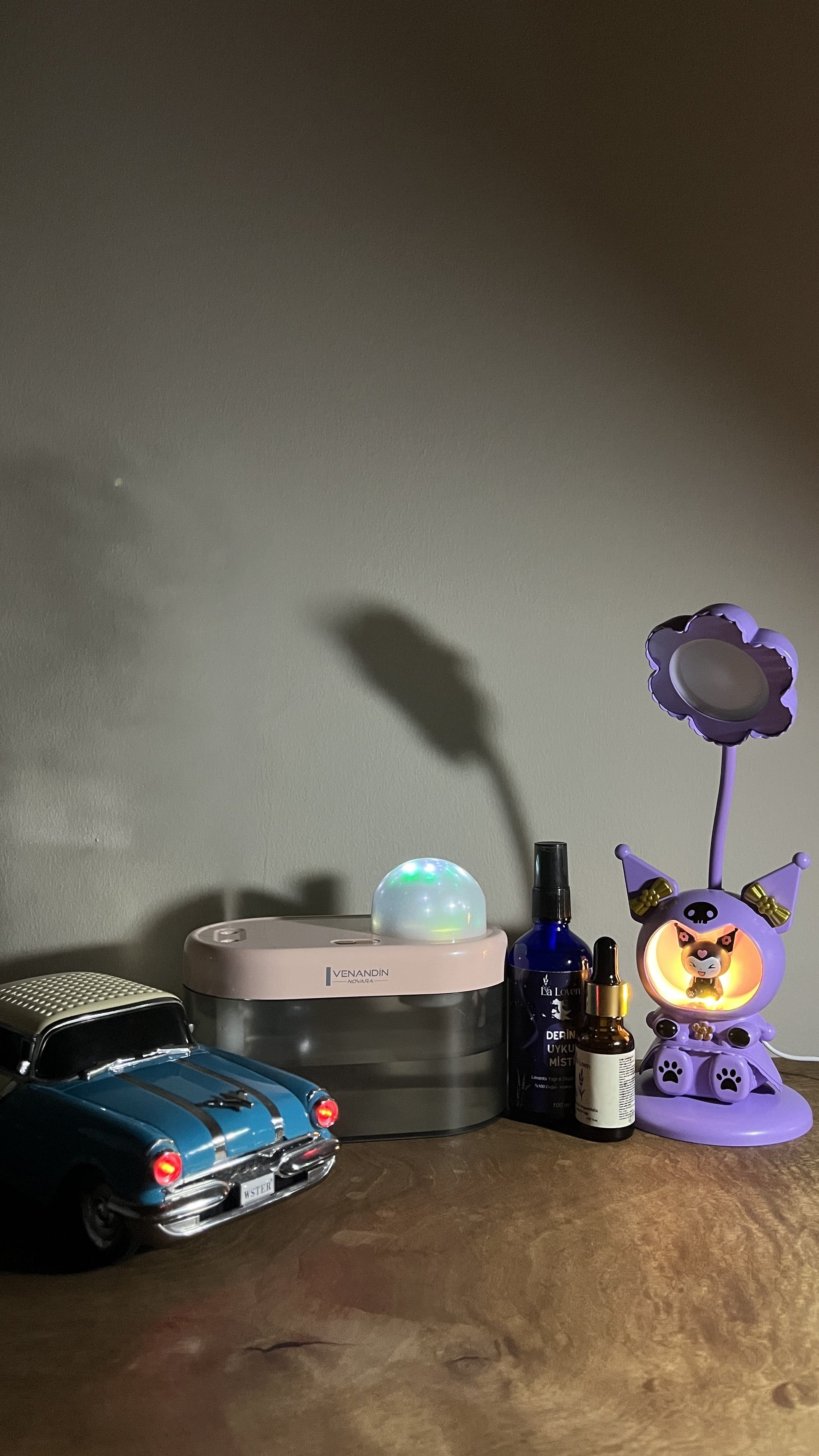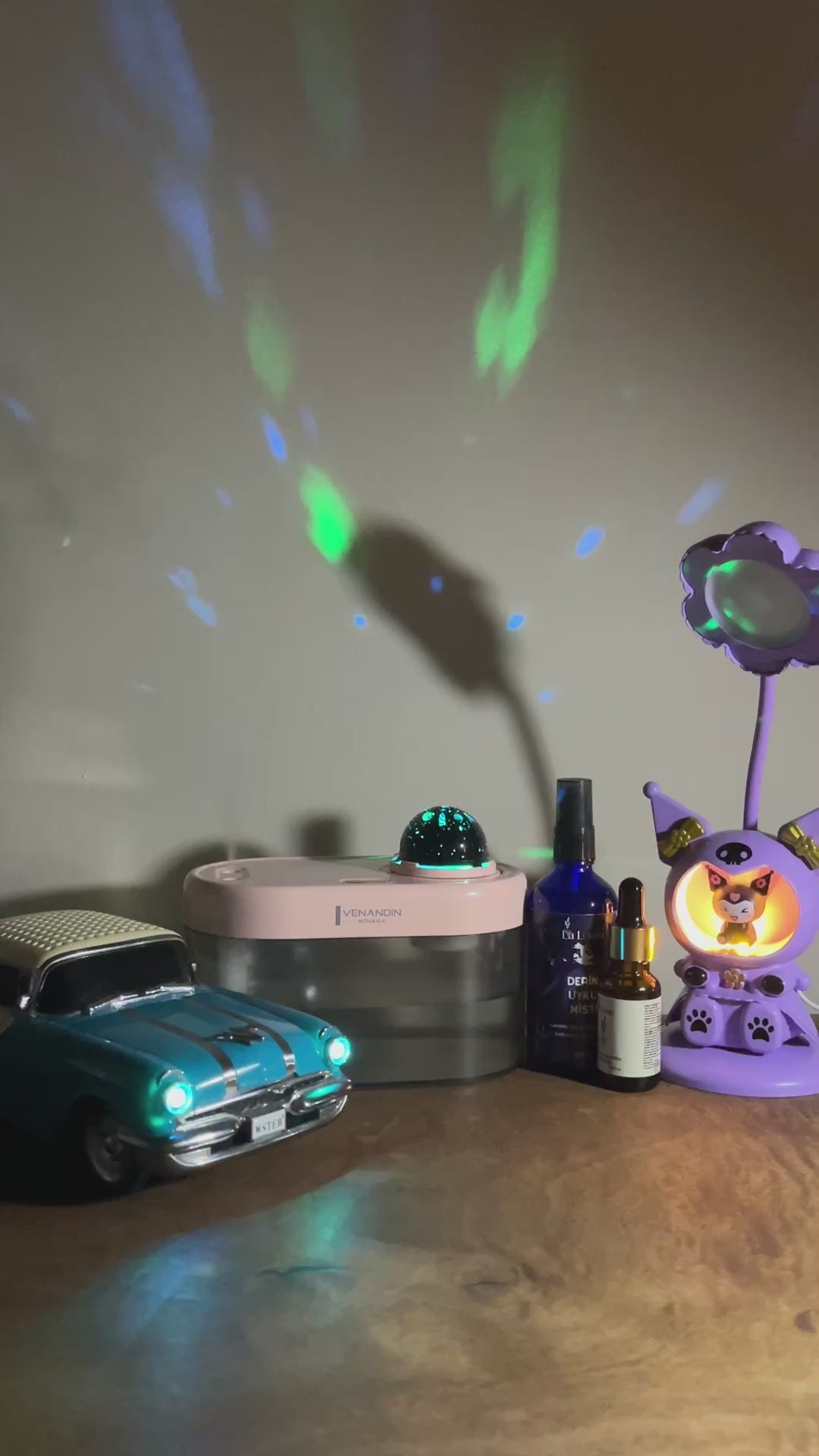 Bluetooth özellikli müzik çalarlı dekoratif araba, difüzör, oyuncaklı masa lambası ve uyku misti ile tam bir huzur ve dekor seti oluşturur. Şık, eğlenceli ve aromaterapik bir kombinasyondur.