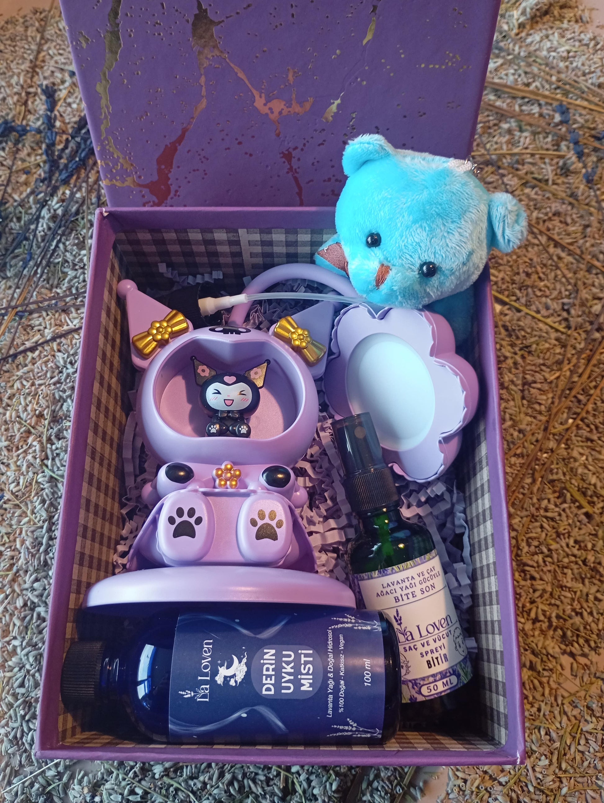 Huzurlu Uyku ve Koruma Seti (Mor Papatya Lamba, Misti ve Peluş Hediye)