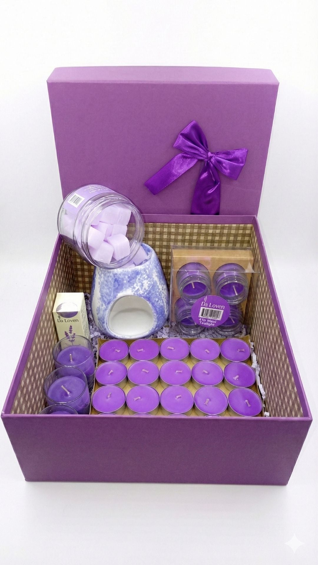 Koku ve Işık Terapisi Seti (22 Mum, Buhurdanlık ve Lavanta Yağı)
