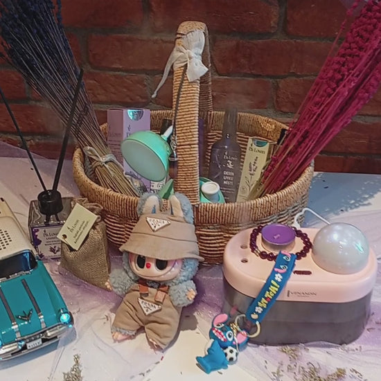 Aromaterapi + bakım + dekoratif + çocuk aksesuar içerikleriyle tam kapsamlı bir hediye kutusu.
