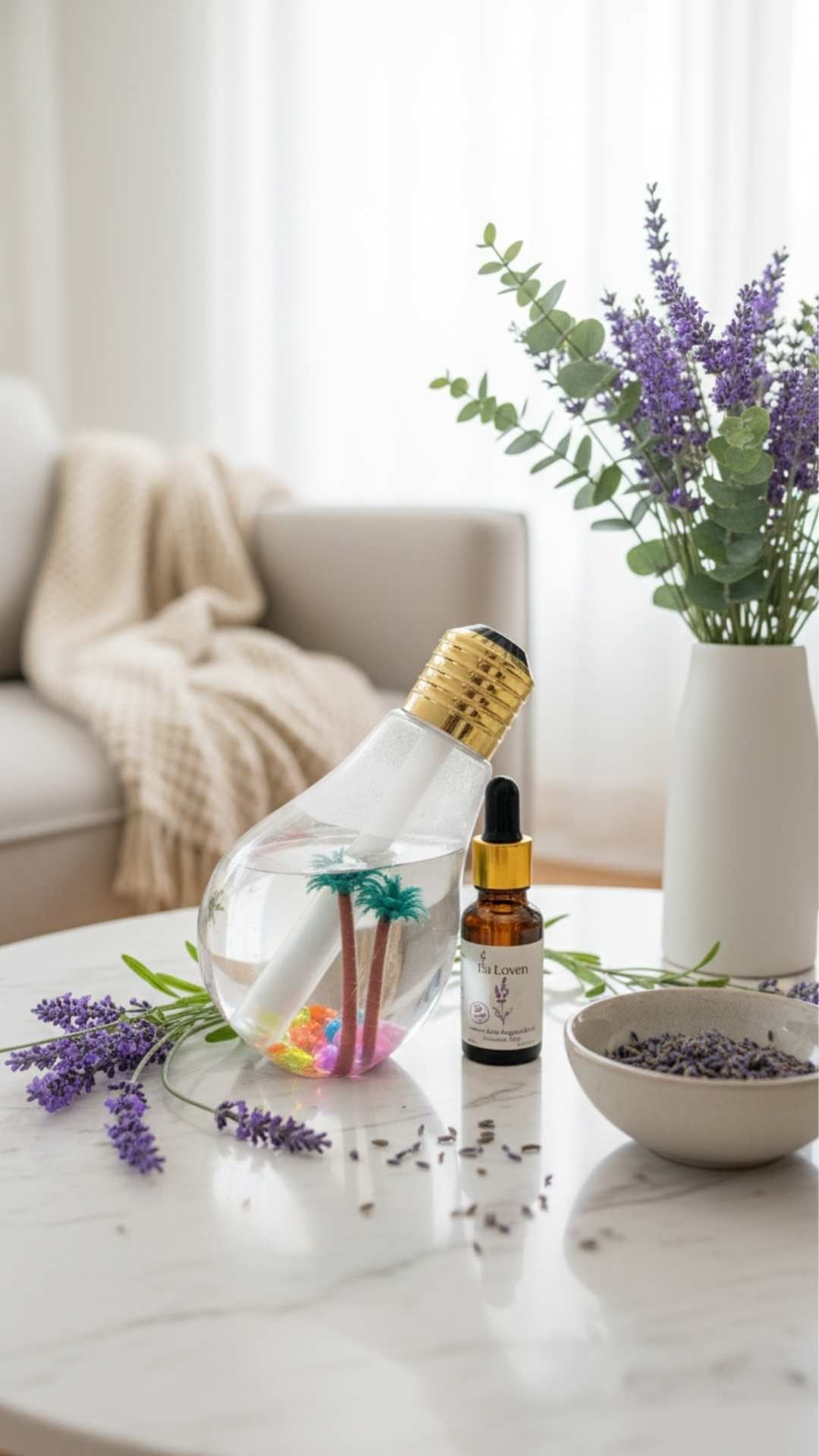 Lavanta Tropik Ampul Seti, tropikal bir dokunuşu lavantanın huzur veren aromaterapi etkisiyle birleştiren özel bir dekoratif difüzör deneyimi sunar.