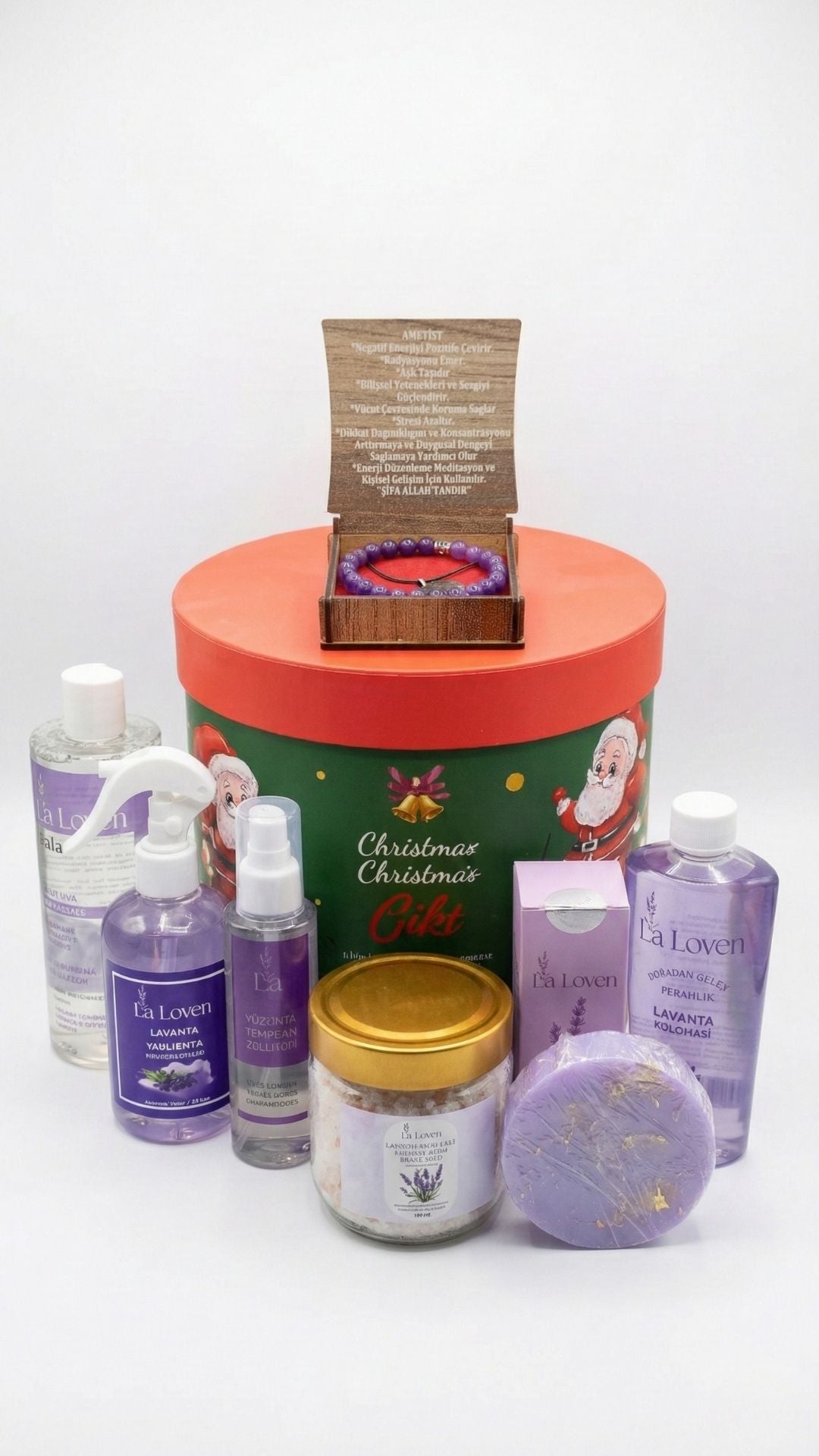 Laloven'in bu özel Yılbaşı Premium Seti, sevdiklerinize baştan ayağa yenilenme ve huzur dolu bir başlangıç vadediyor. Şık ve Yılbaşı ruhuna uygun özel hediye kutusunda sunulan 7 farklı ürün, hem günlük cilt bakımını hem de ev ve kişisel koku ritüellerini tamamlar.